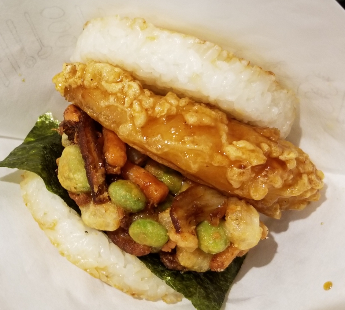 かき揚げが基本嫌いなのと、ライスバーガーのライスパテがいまいち好きじゃないのですが、