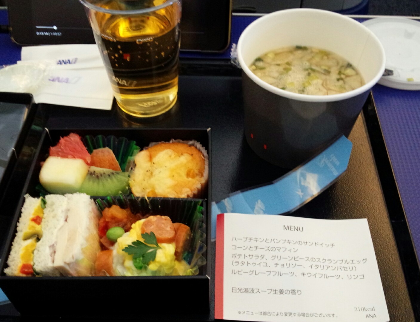 機内食は好きなサンドイッチでした。