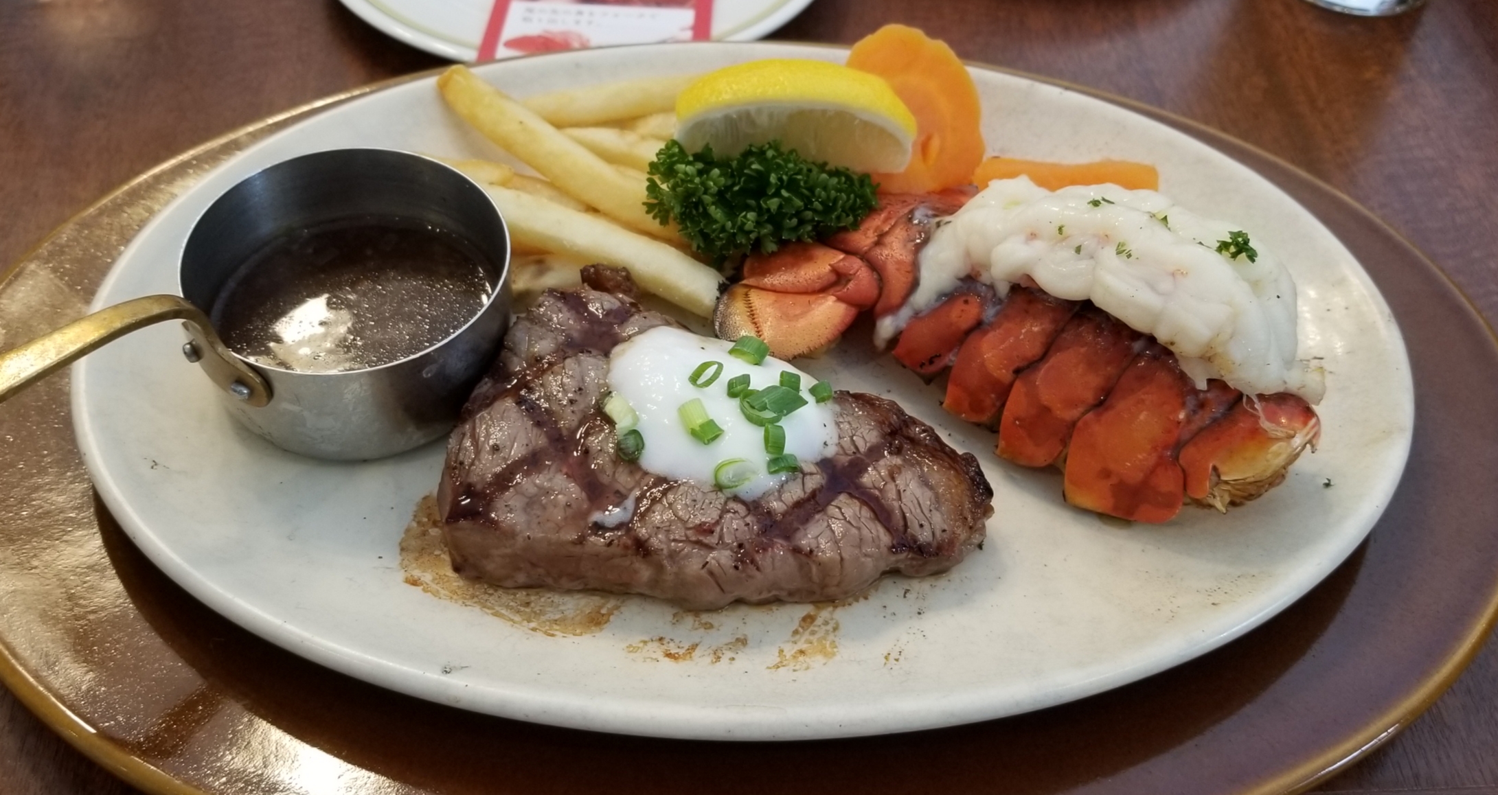 オマールエビとアンガスサーロインステーキ