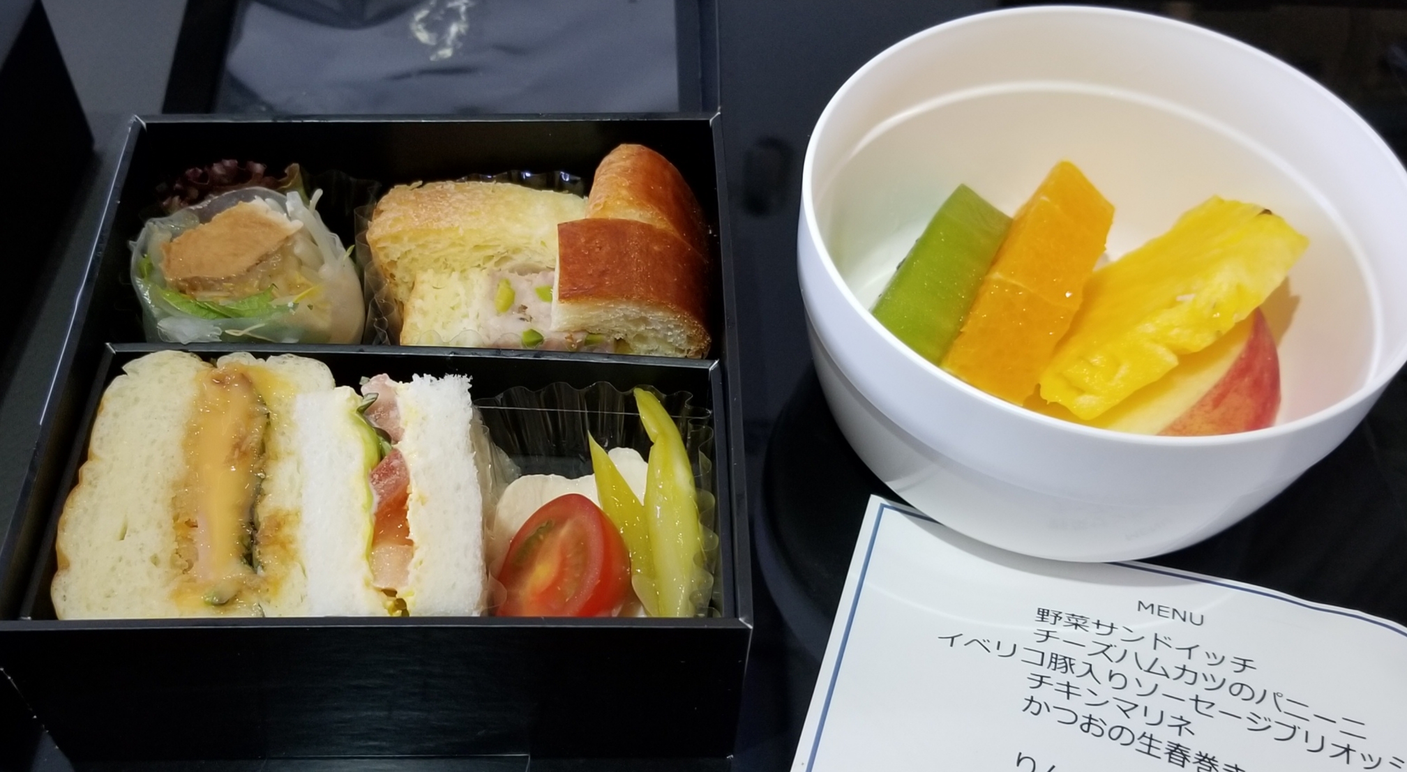 帰りも軽食ですが、もつ鍋食べたので少しキツイ。