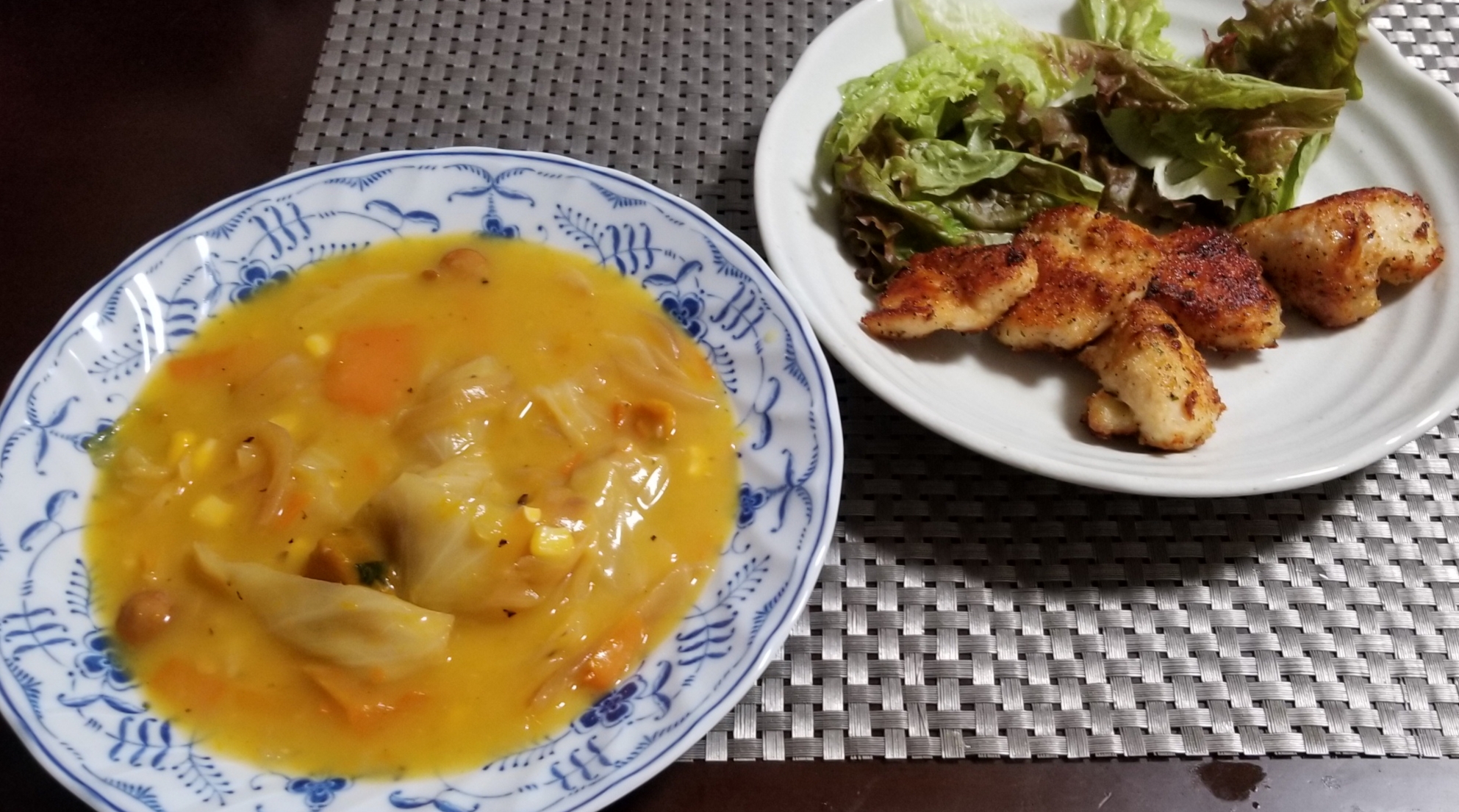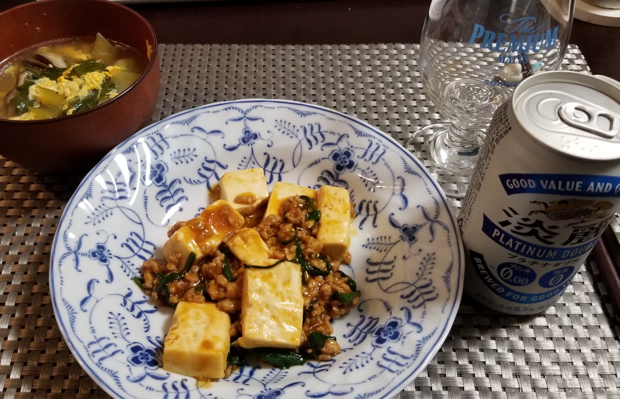 今日のおかずは、麻婆豆腐とワンタンスープ