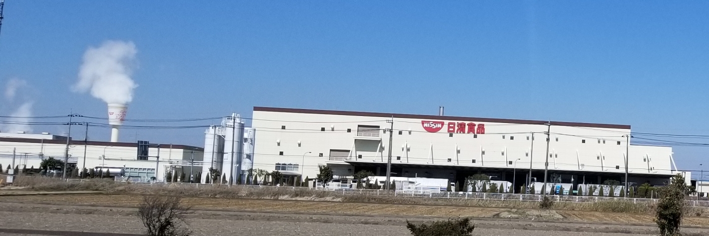 行きの車窓からは、今旬の「日清食品」カップラーメンの煙突