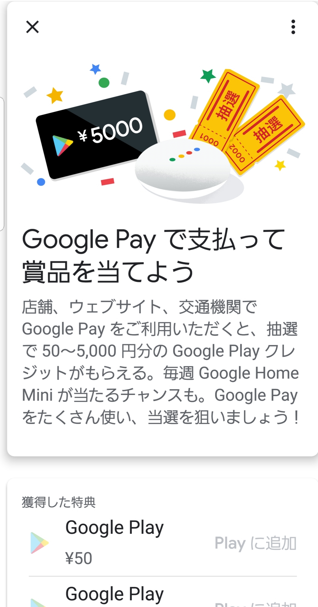 Google Pay で支払って賞品を当てよう