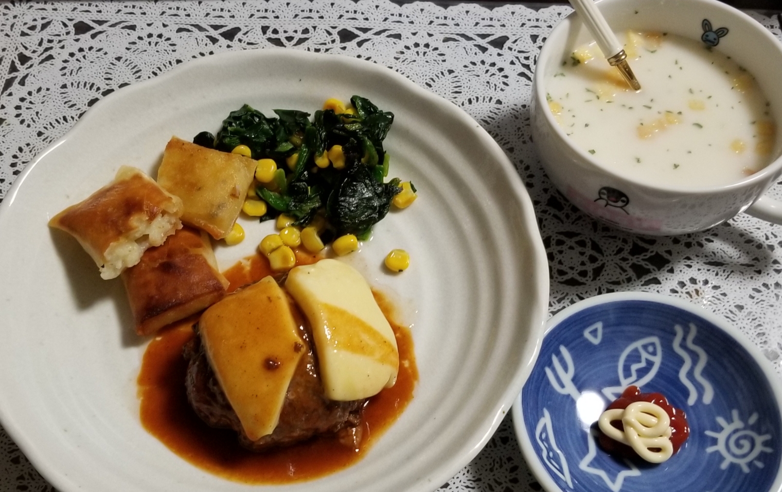 奥さんがハンバーグを焼いてくれました。