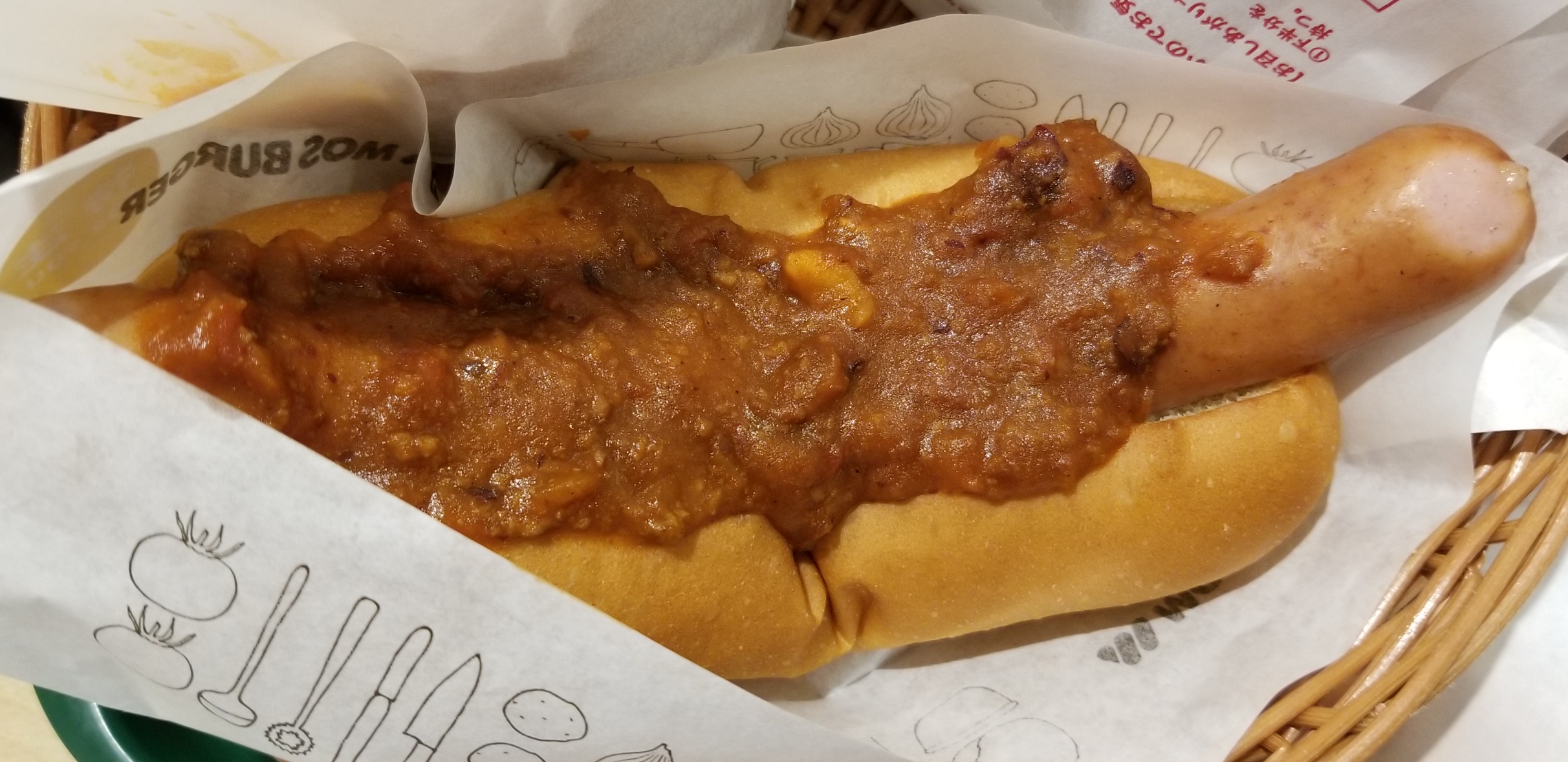 チリドッグ、この後ひっくり返して、ただのホットドッグになります。