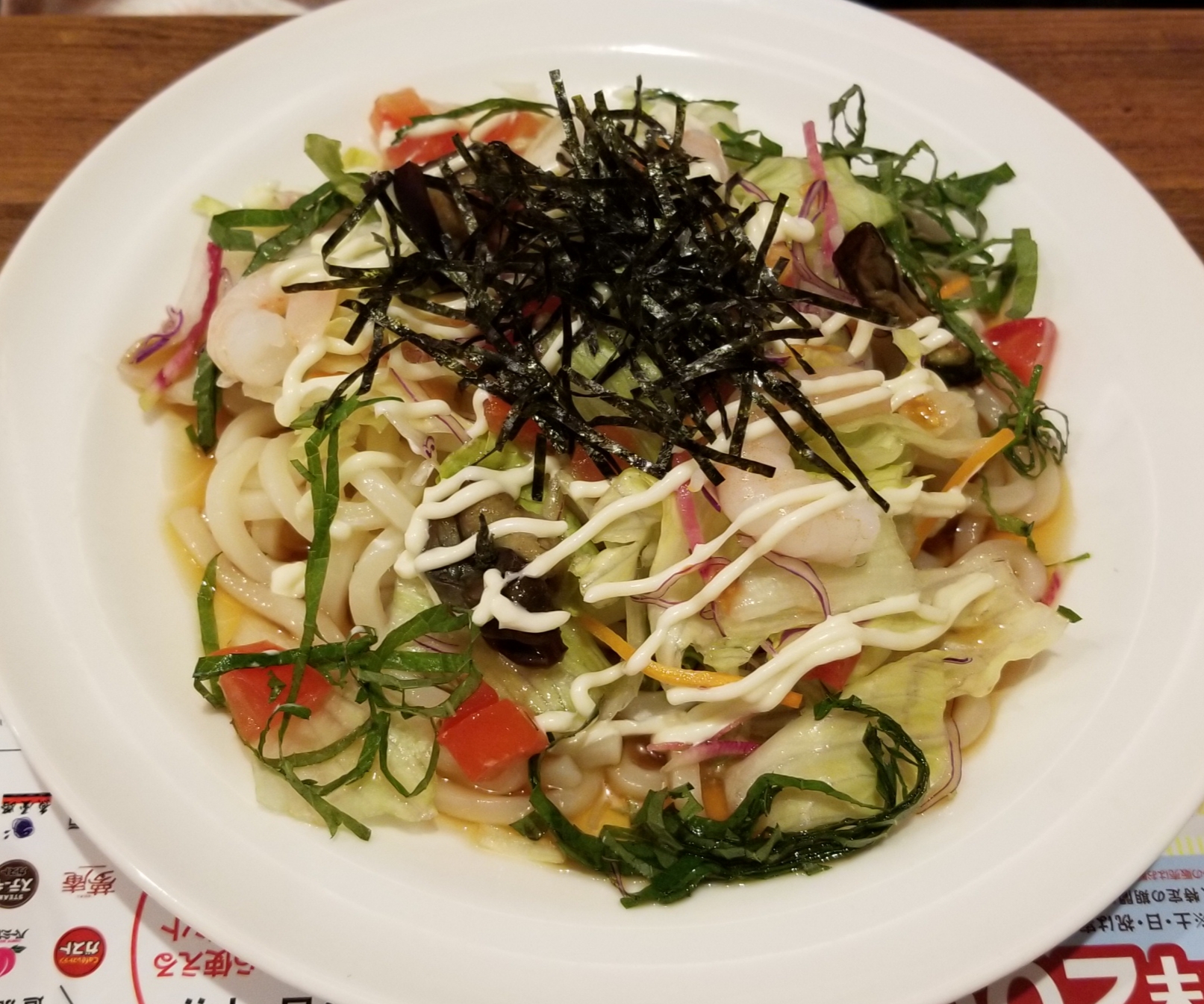 奥さんは、海老と野菜のサラダうどん。