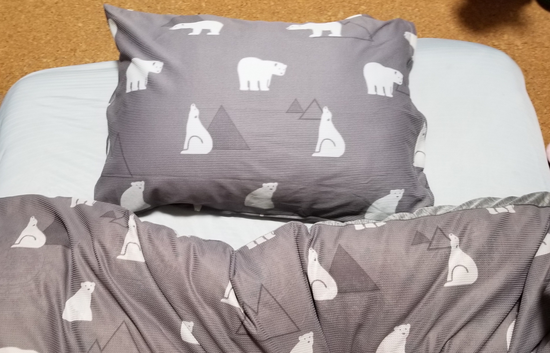 また、素材がツルツルの素材なので、掛け布団がすぐに滑ってどっかに行っちゃいます。