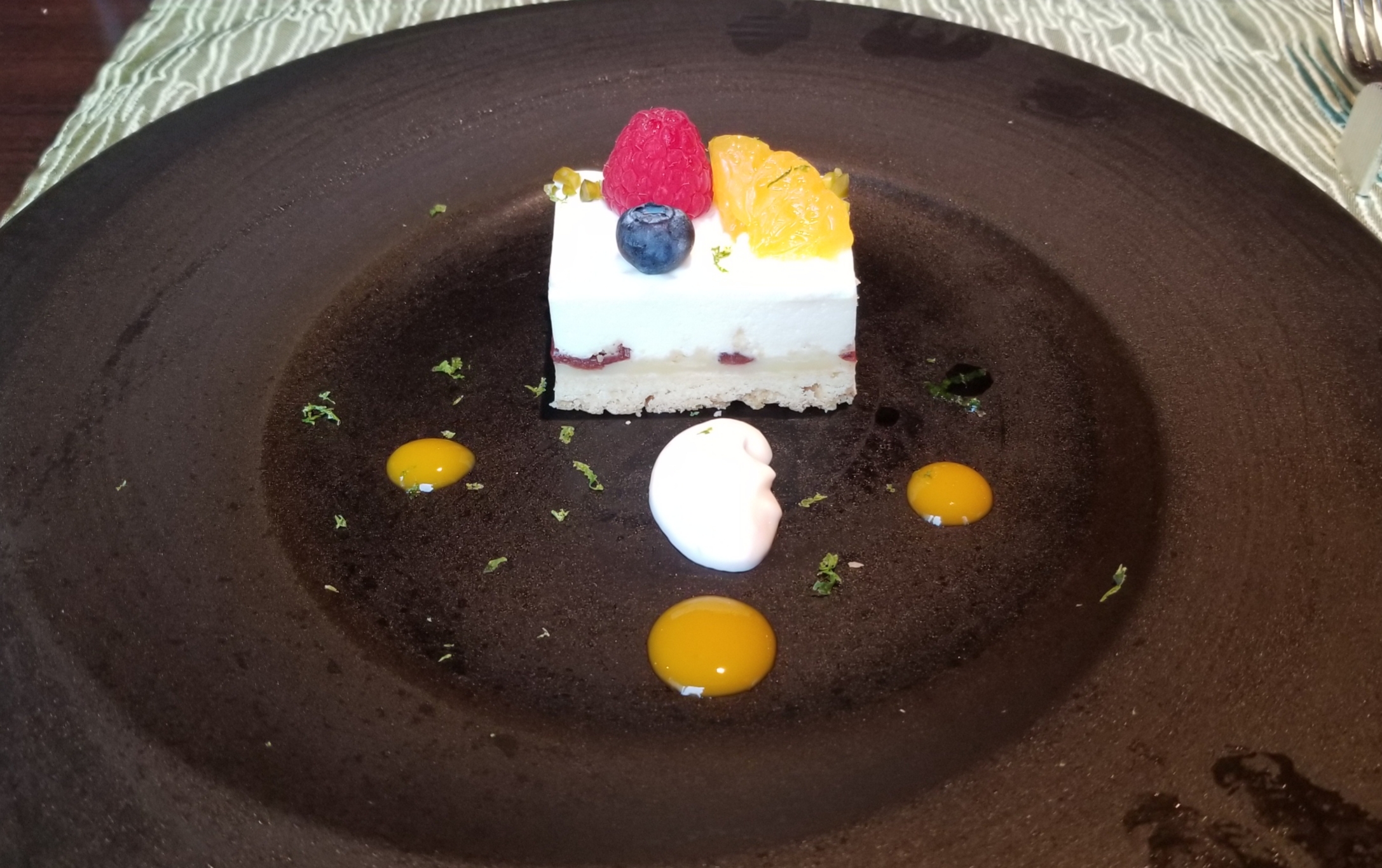 冷しすぎて、黒いお皿なので、給仕の方の指の跡がくっきり浮かんじゃってるのは残念です。