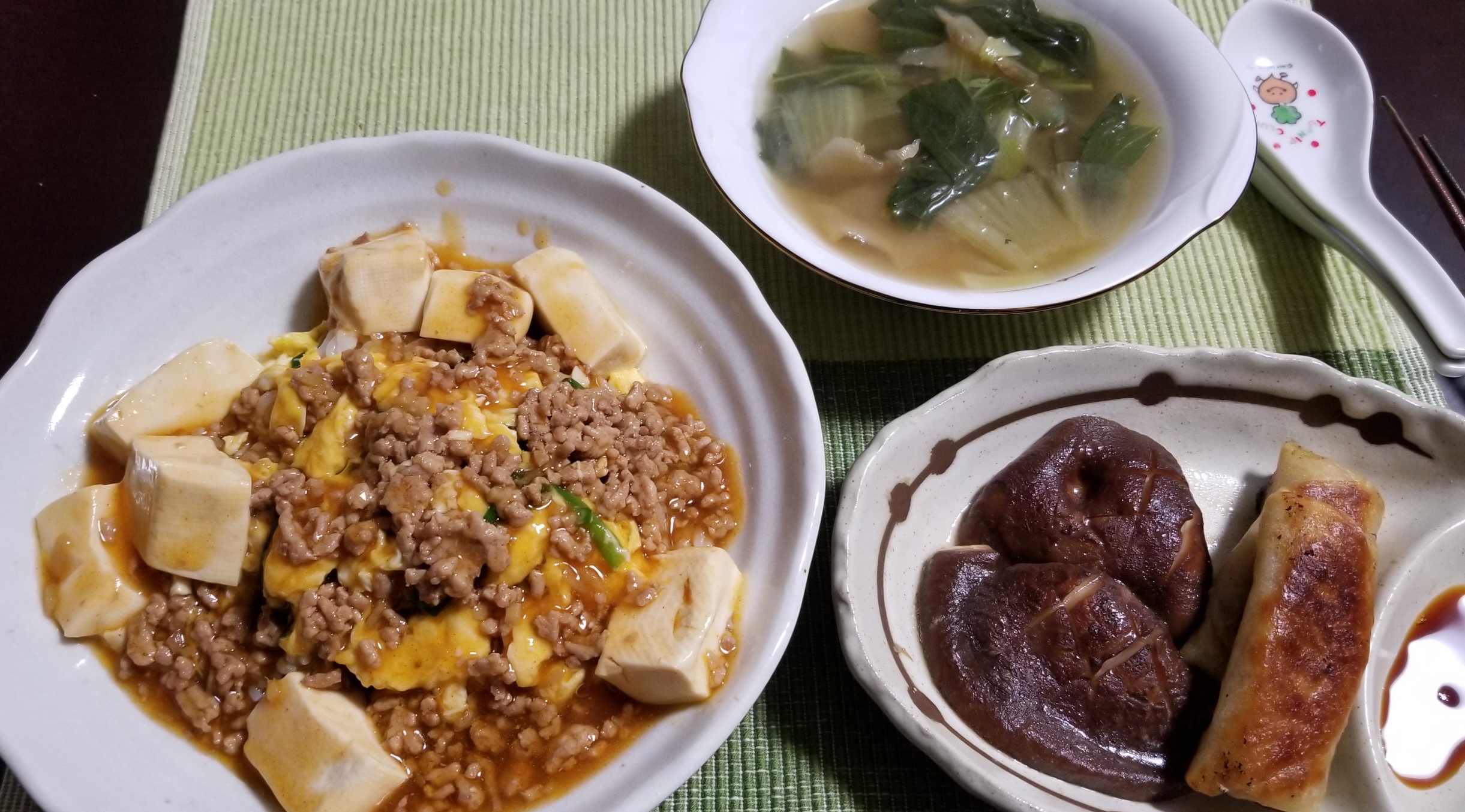 マーボー天津飯と春巻