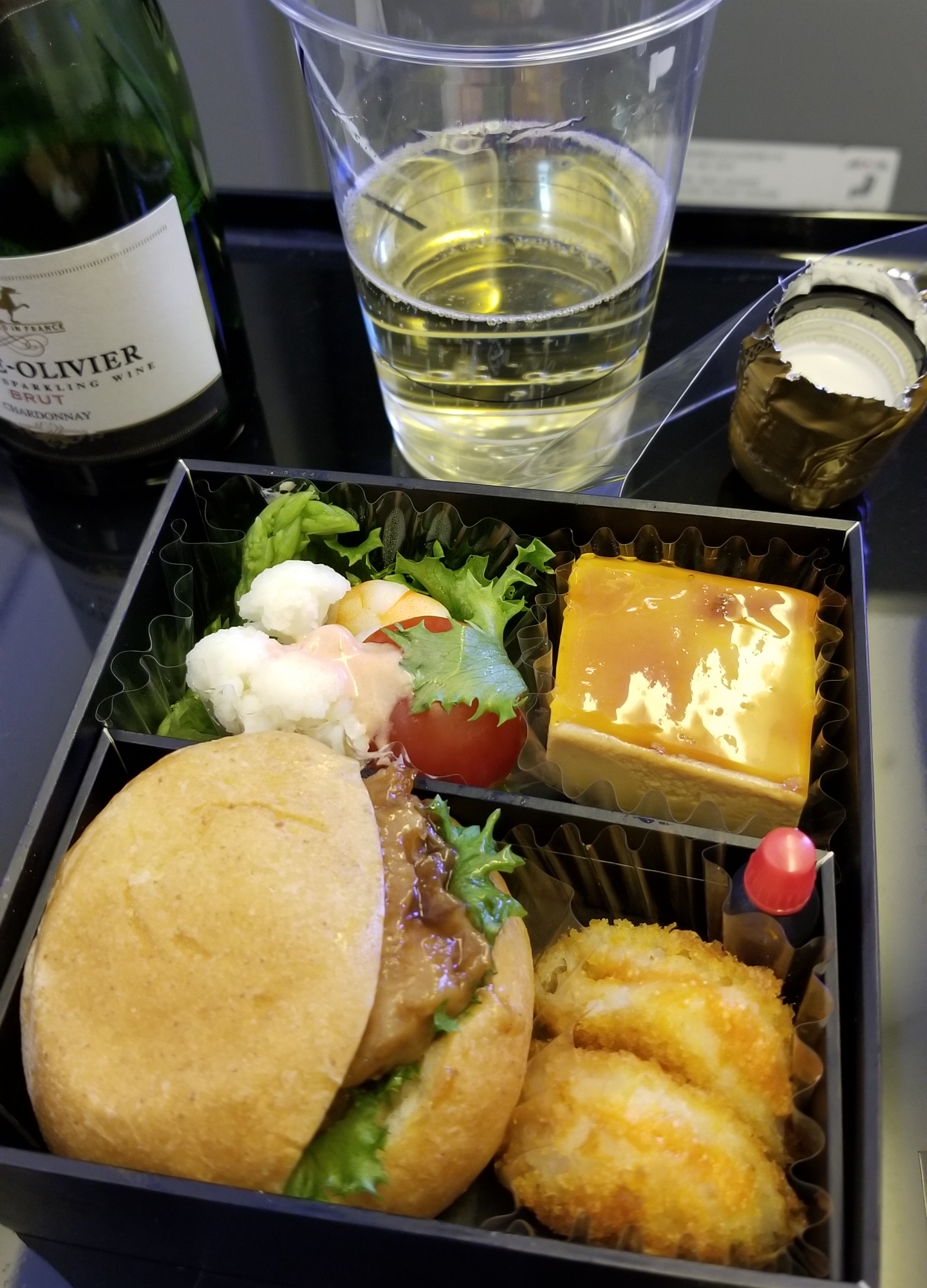 機内食は、とても小さなチキンバーガー