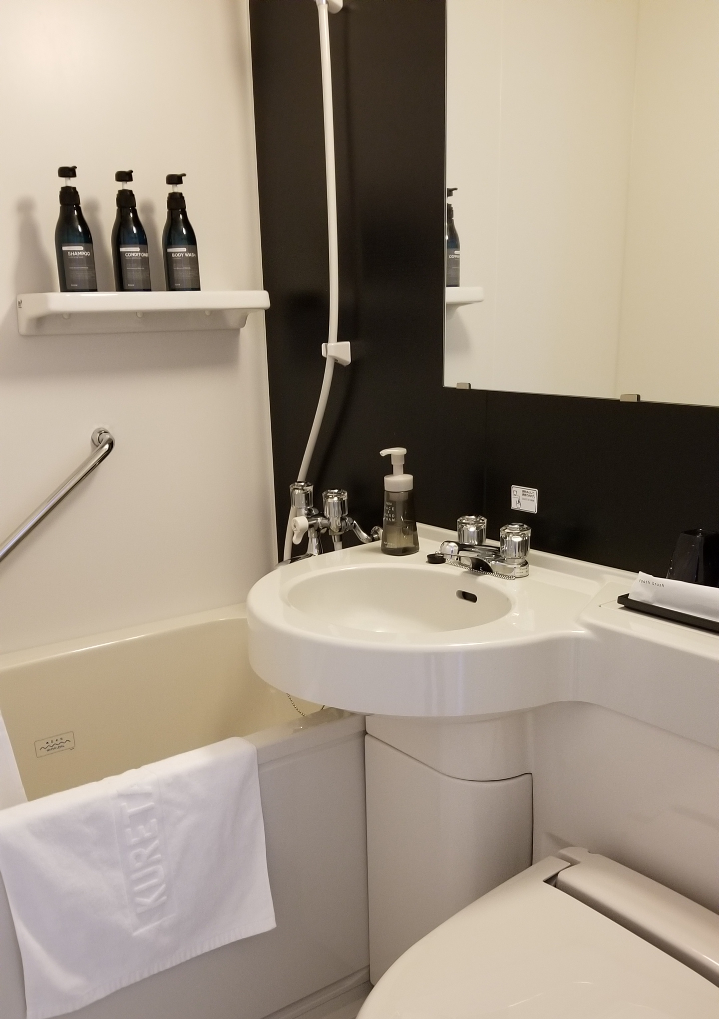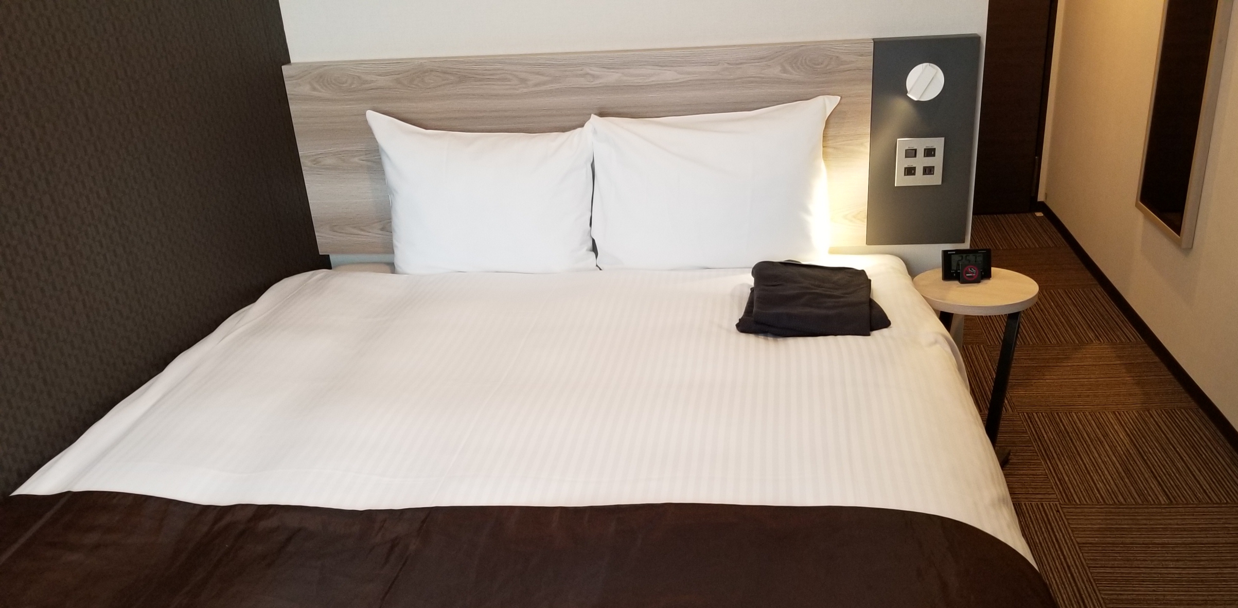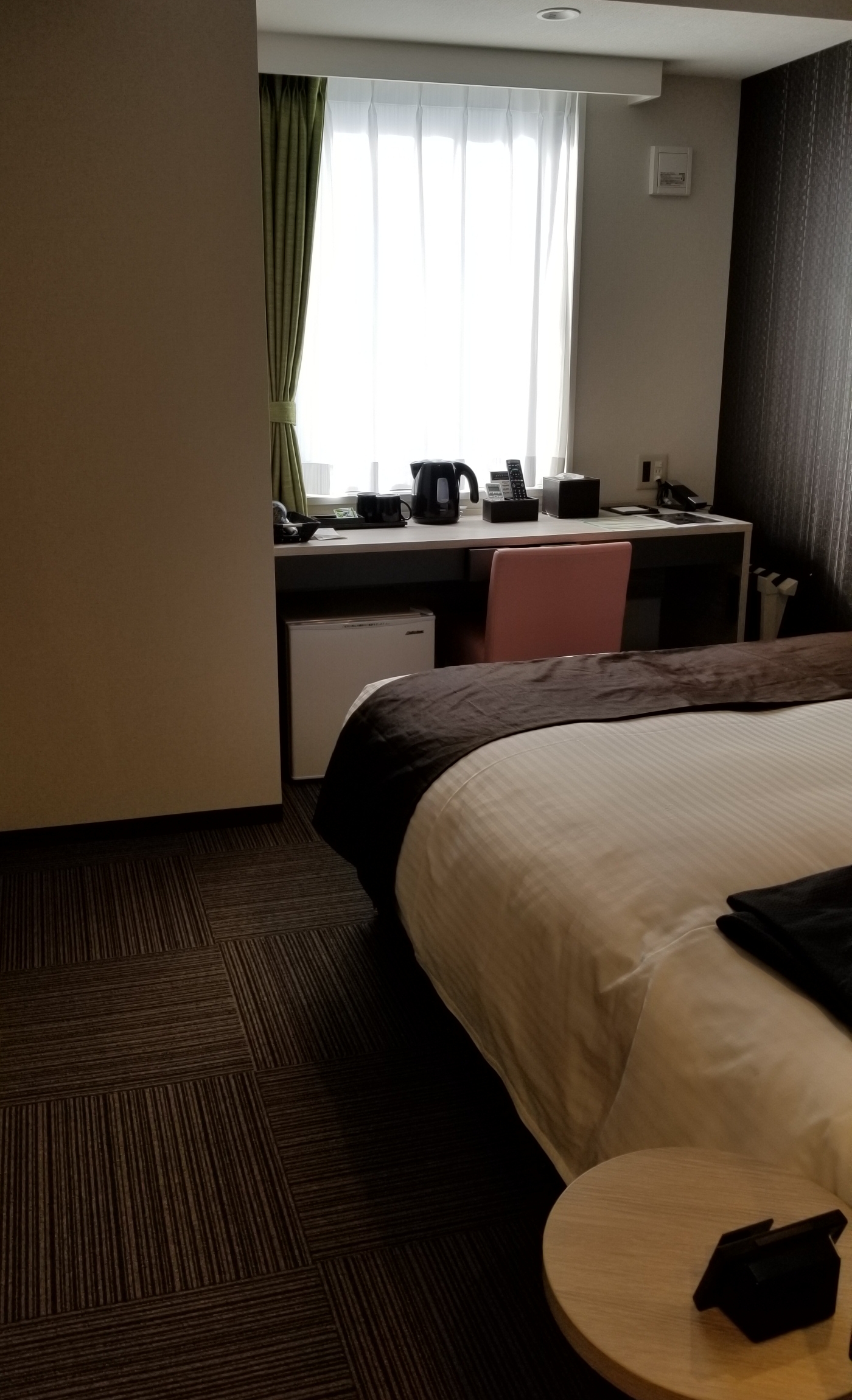 今時のホテルで、綺麗でベッドは広いけど部屋は狭い。