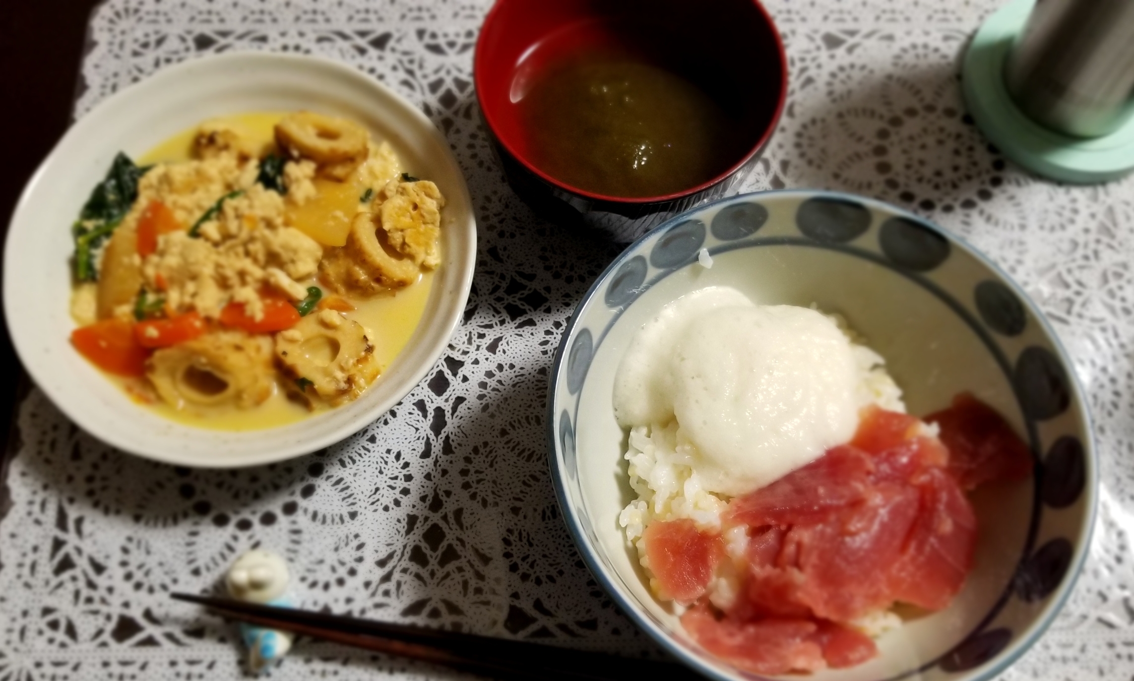 今日のメインは、マグロトロロ丼。
