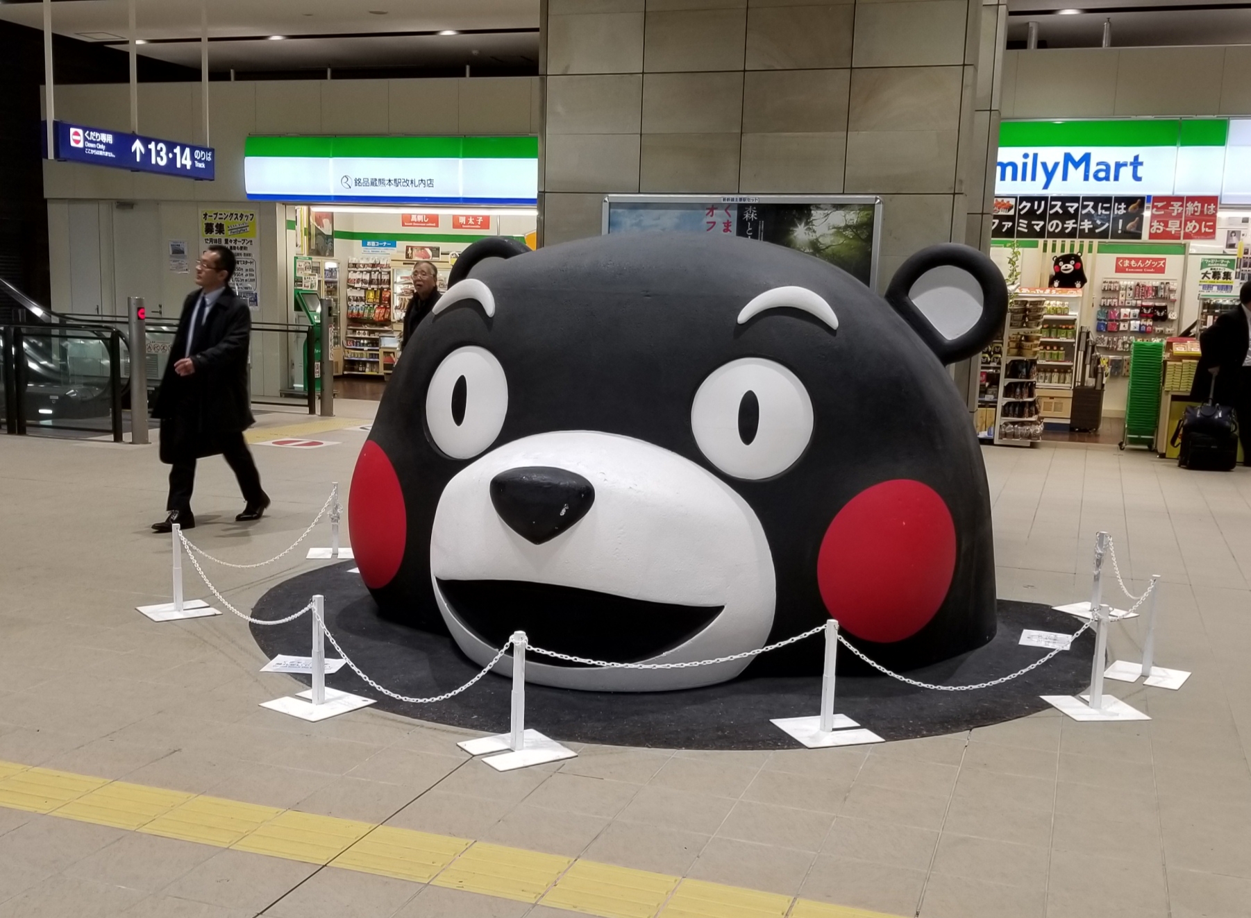 でかいくまモンに見送りしてもらって九州新幹線に乗ります。