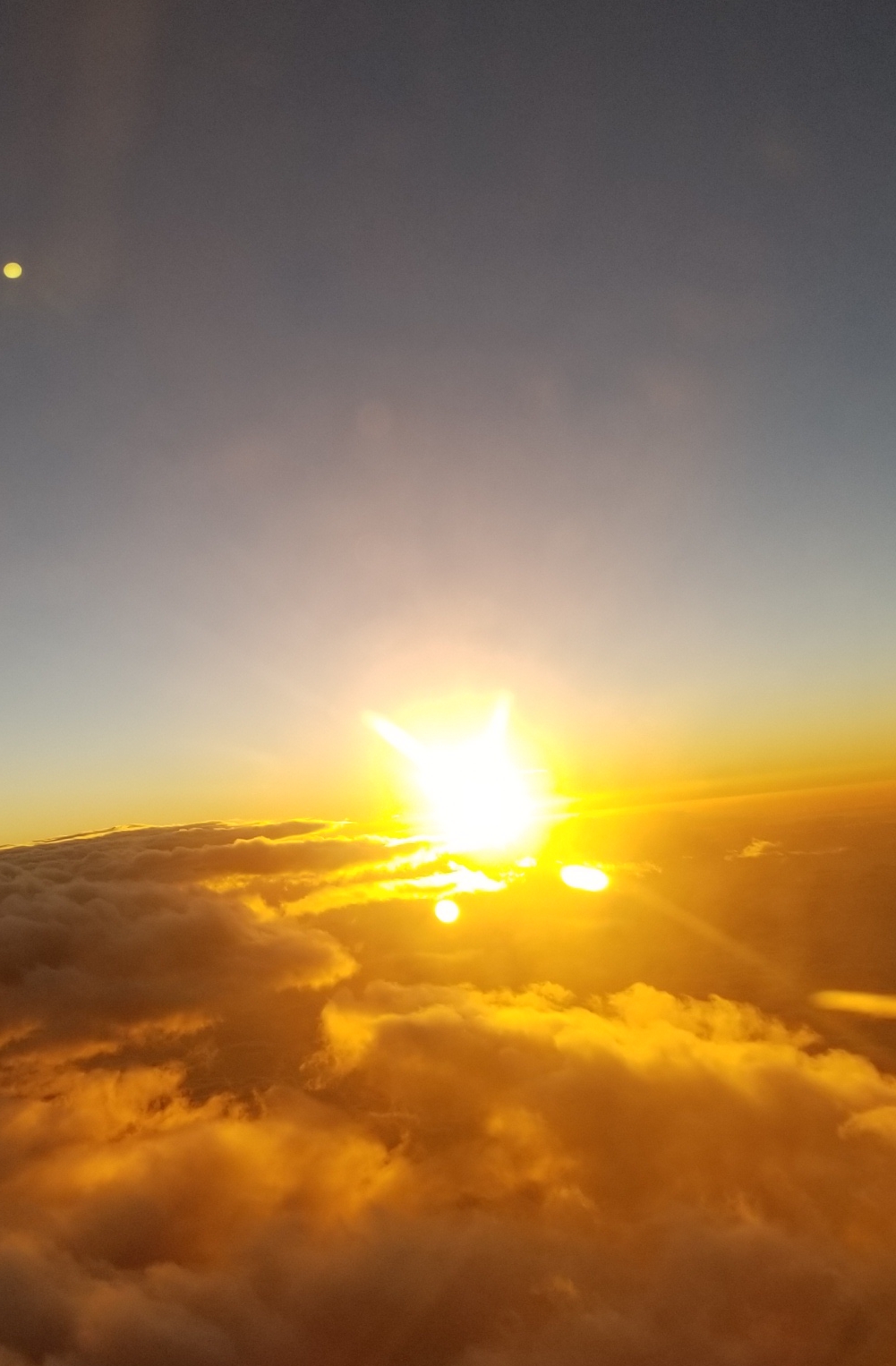 夕日が綺麗。なぜか南を向いて飛んでいるみたいです。