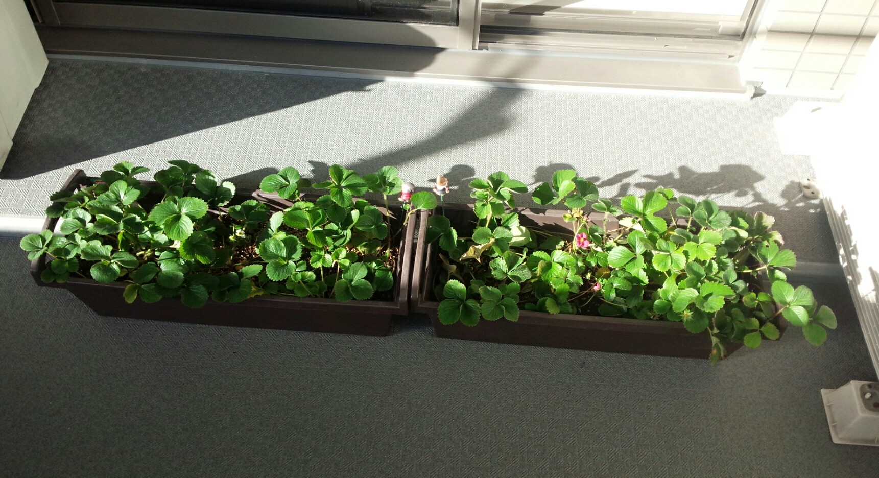 敷地の公園部分に移動しておいたイチゴのプランターも戻ってきました。