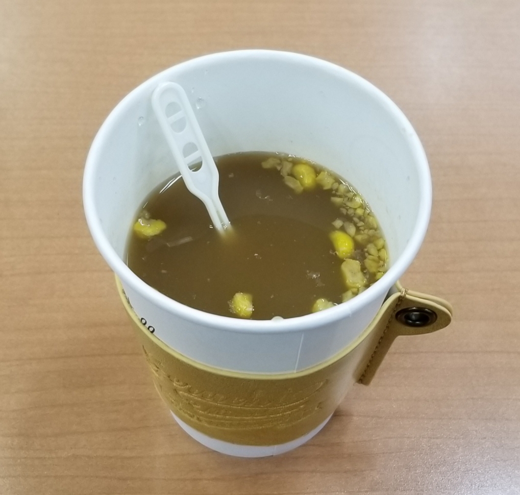 カップスープに烏龍茶を入れてしまいました。