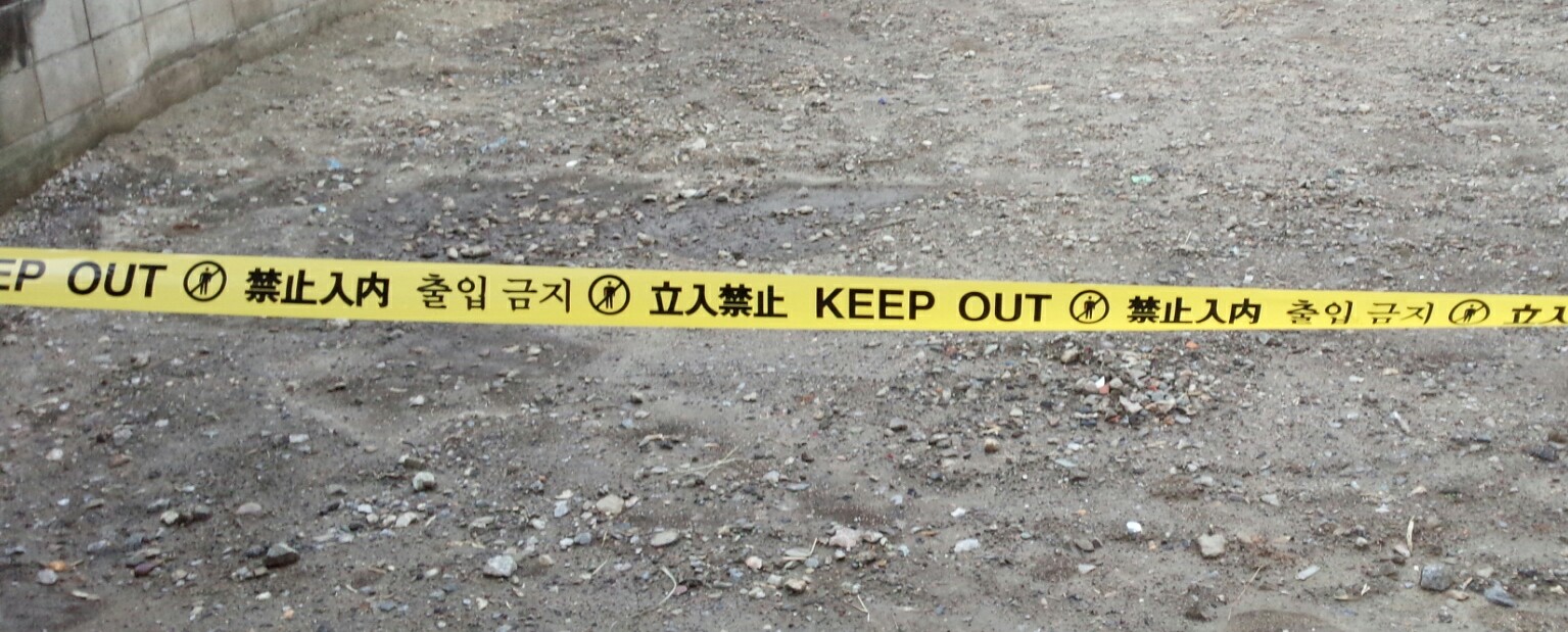 空き地に立ち入り禁止のテープが張られていました。