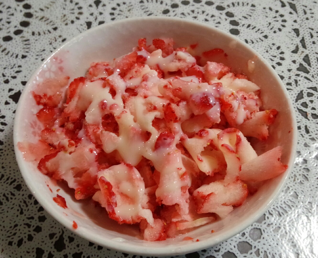 練乳をかけて出来上がり。