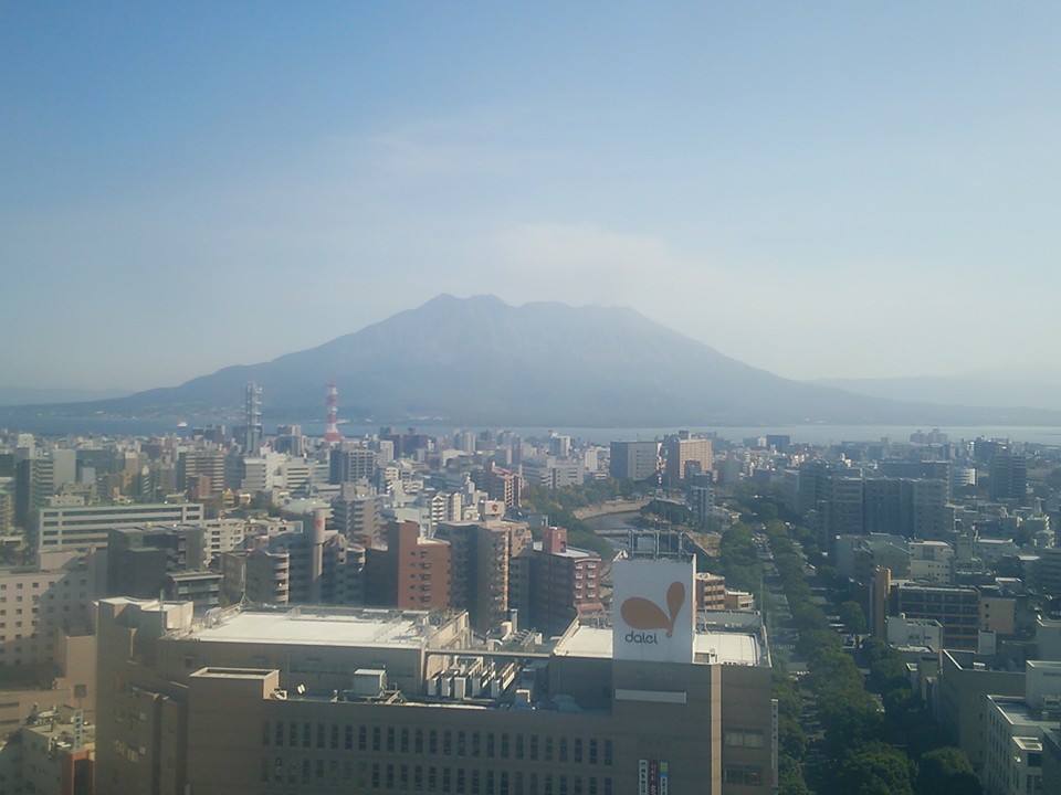 桜島がよく見えるはずが、シールドが雲ってていまいち。