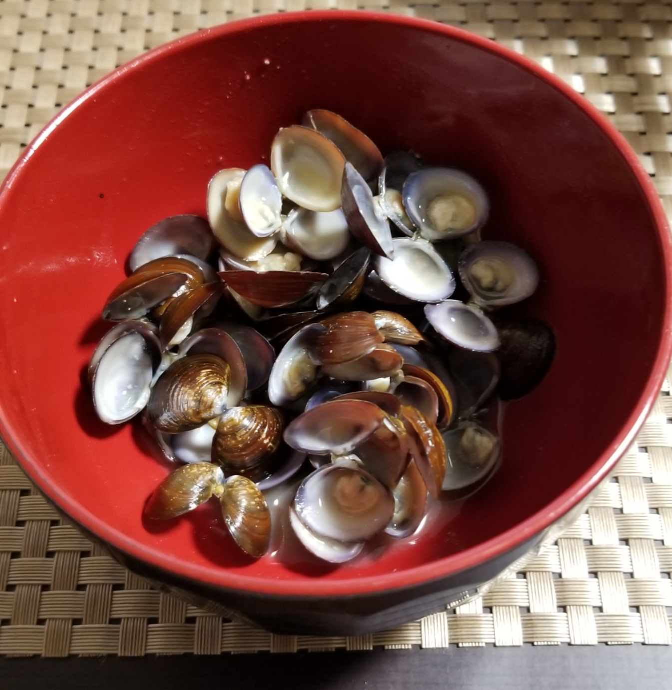 今回一寸違うのは、冷蔵庫にしじみが有るので、