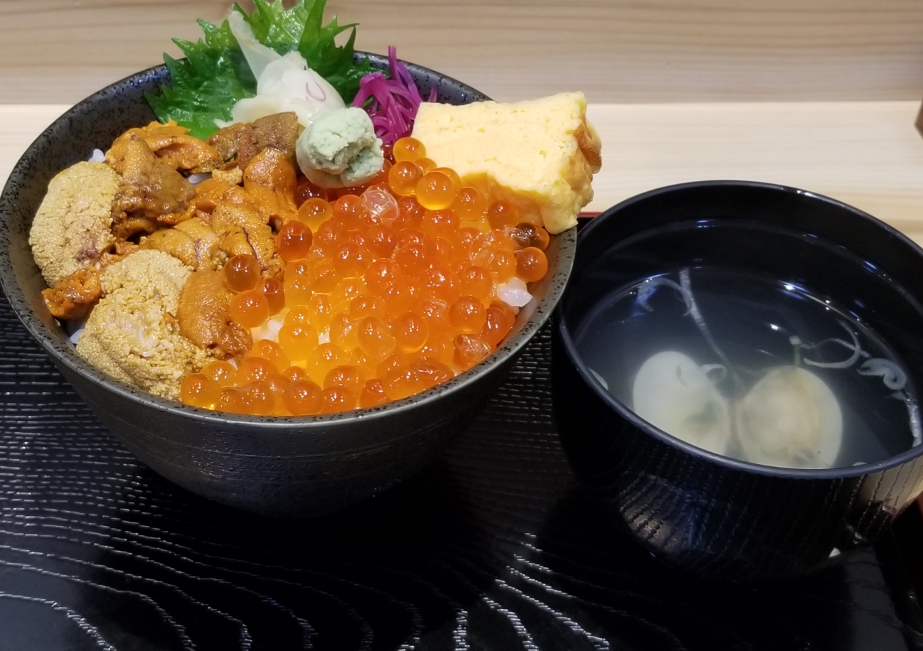 近くの小松水産っていうお店でウニいくら丼1200円。