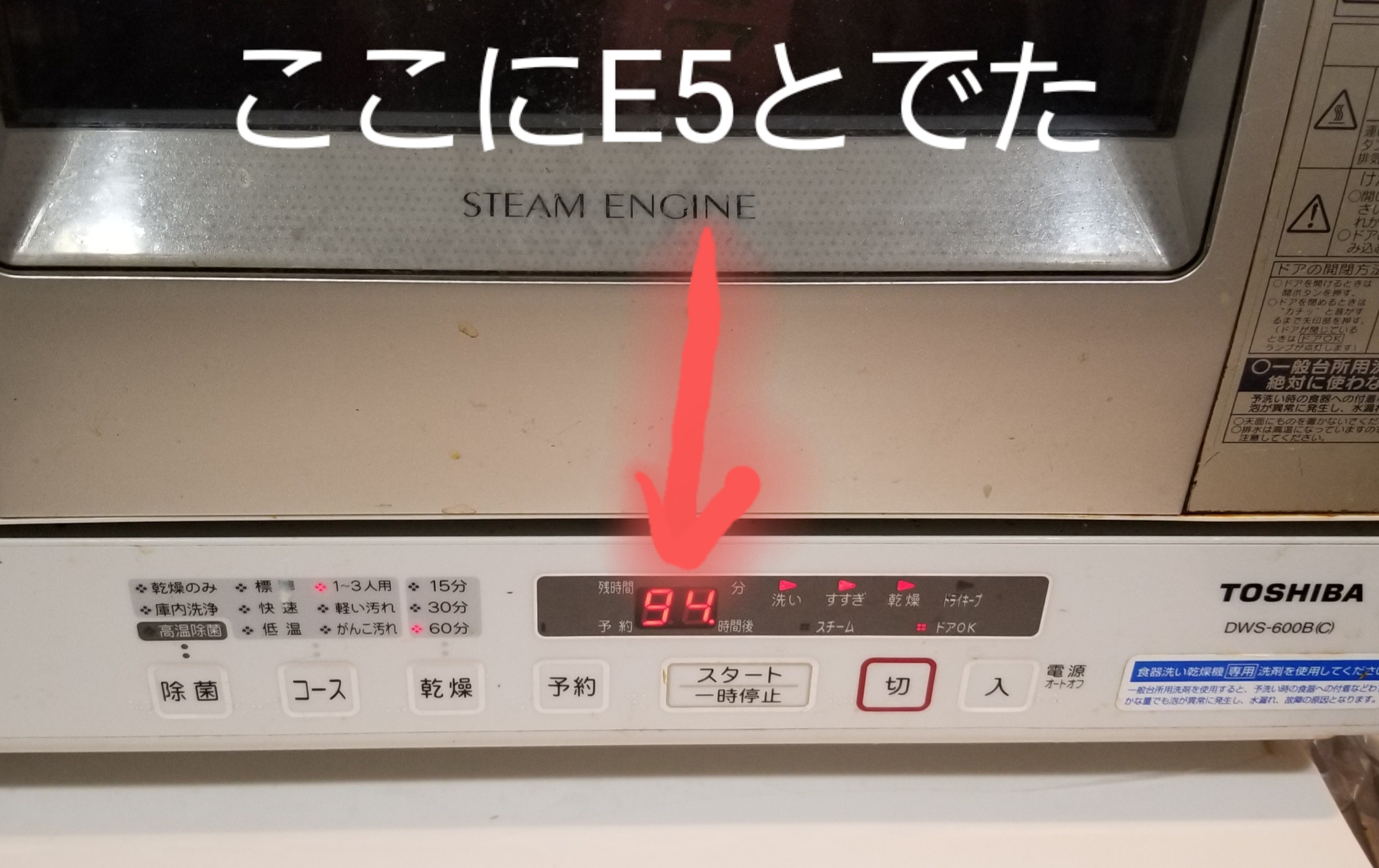 今回「E5」と表示が出て電源がすぐ落ちるエラーが出ました。