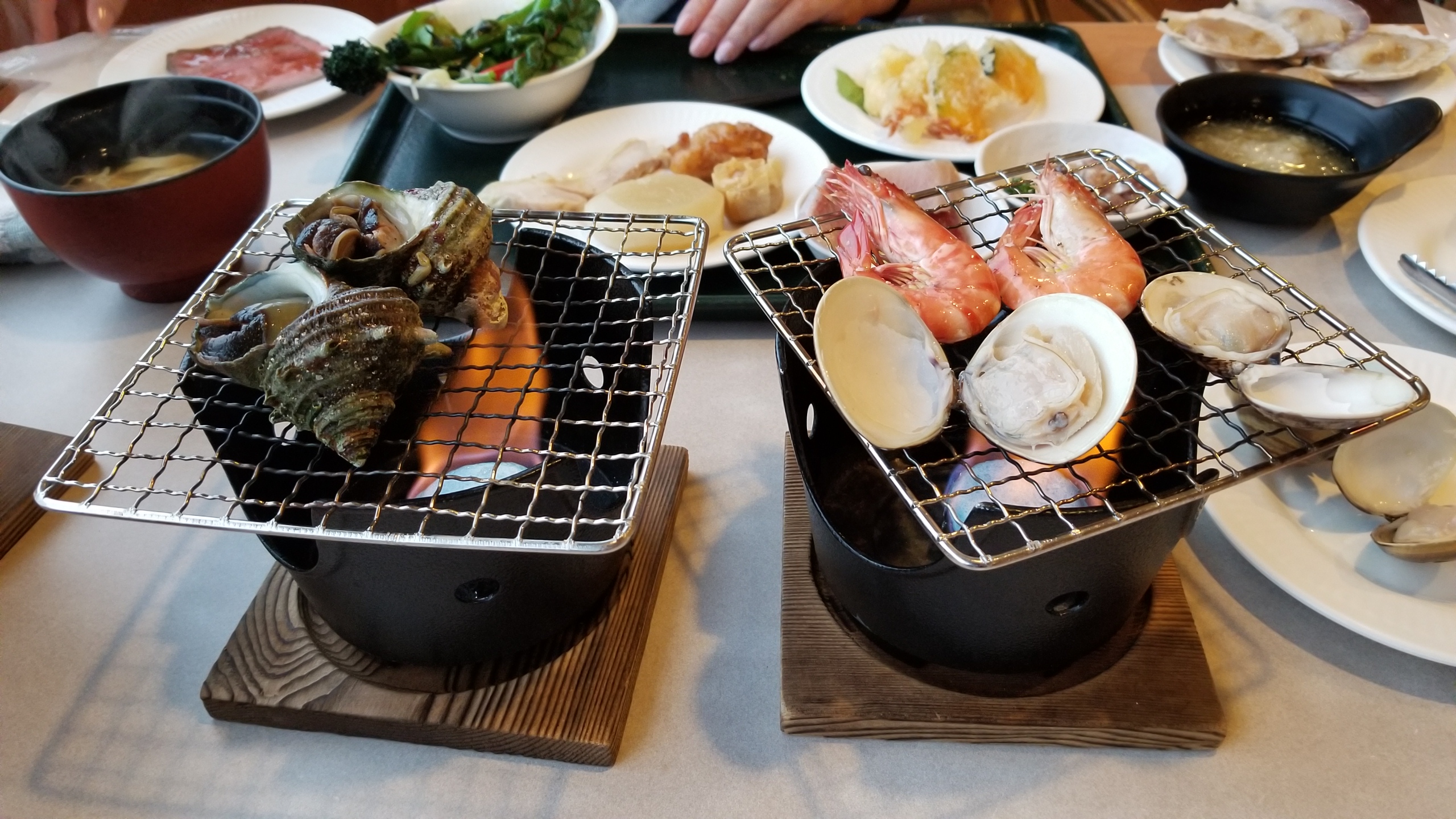 主目的は、さざえや帆立の海鮮網焼きが売りのバイキング