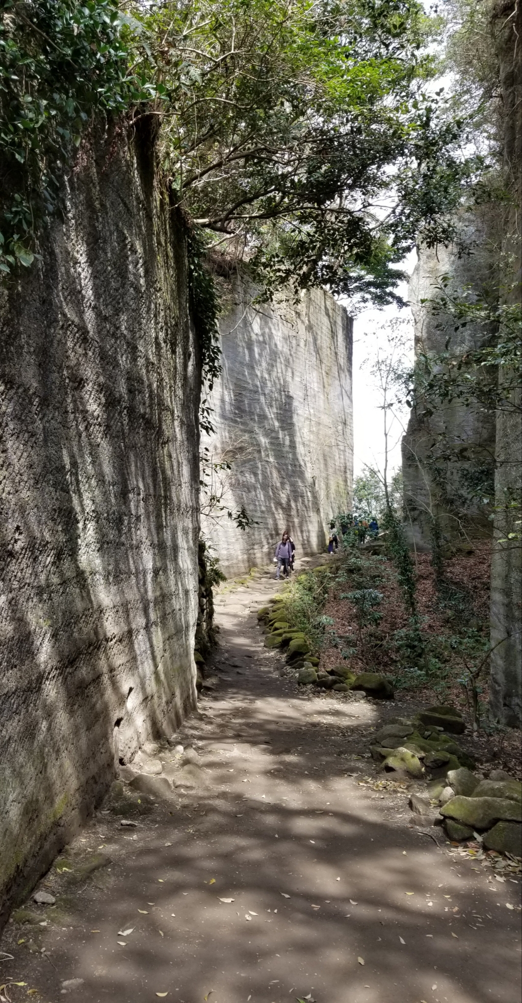 切通し風の通路を通って百尺観音をみます。