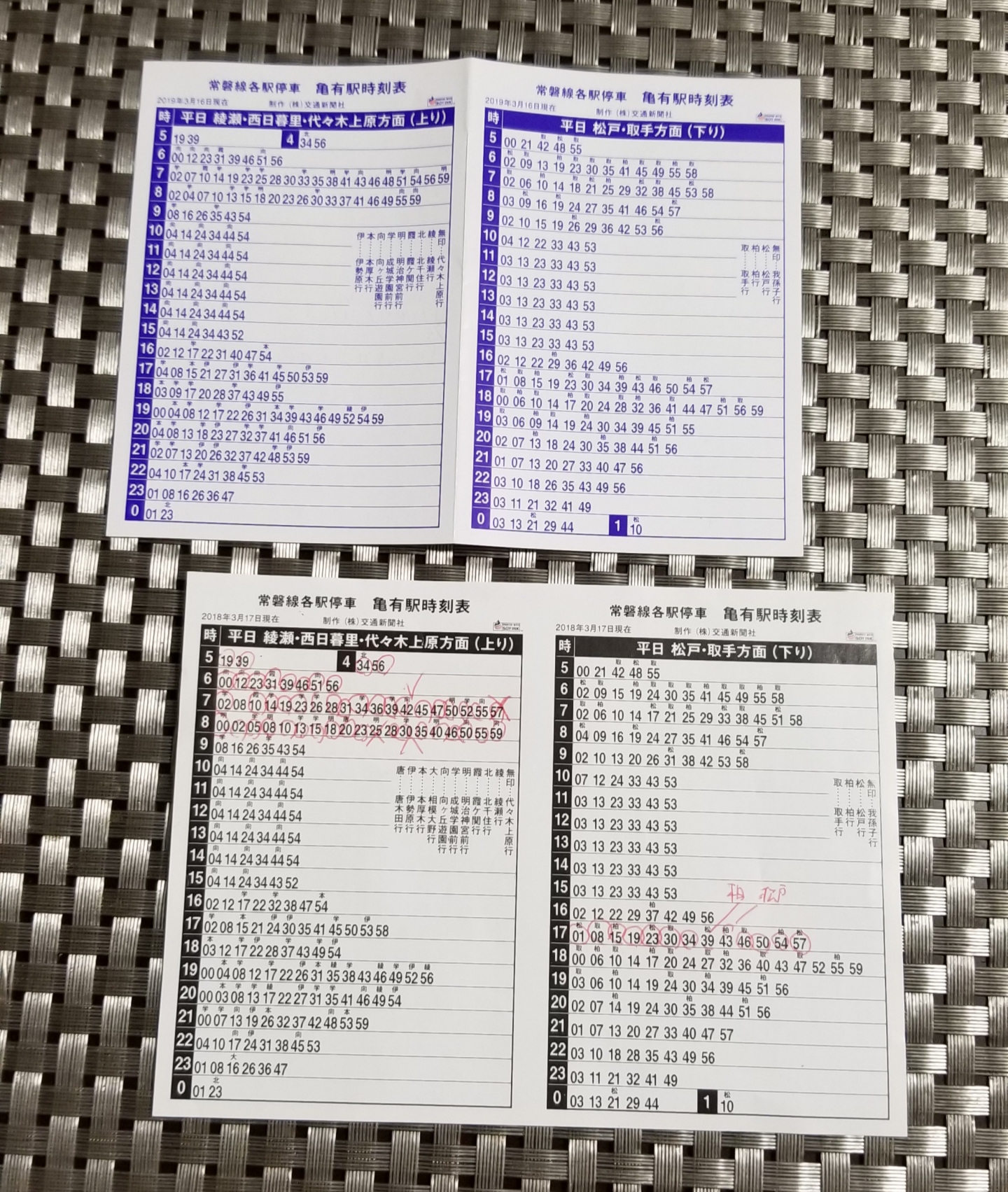 常磐線、千代田線、東武伊勢崎線、日比谷線、半蔵門線、