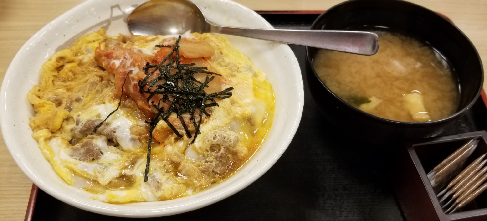 たまご綴じキムチ牛丼。