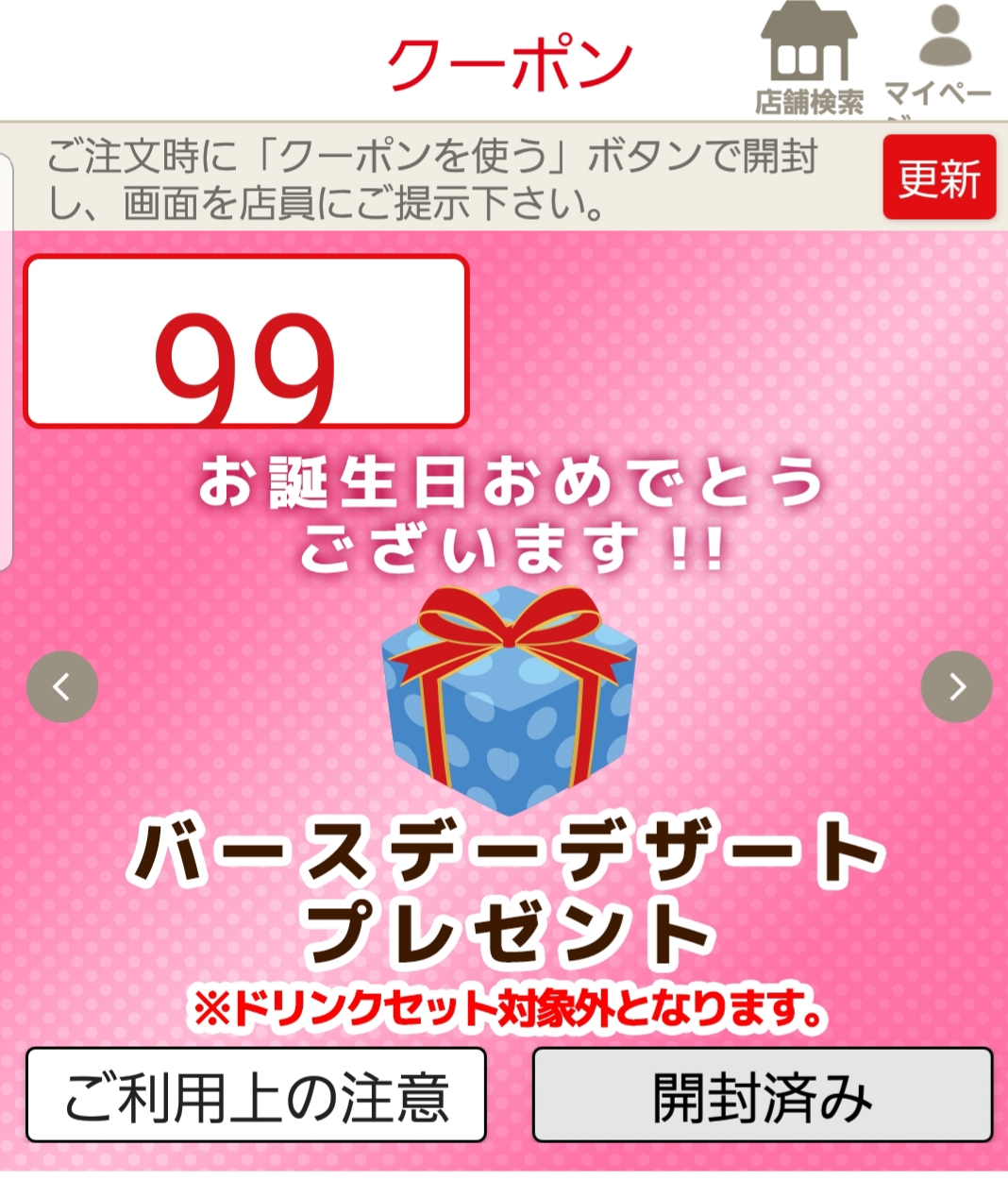 軽く食事をして、クーポンを開封してオーダーします。