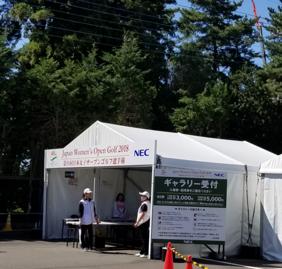 本来のゴルフ場入り口からさらに歩かされてやっとギャラリー入場口。