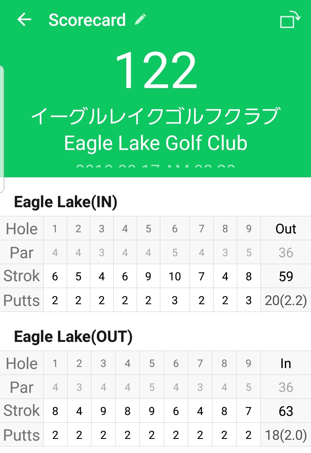 さらに、スコアをホールアウトごとに入力するようになっているので