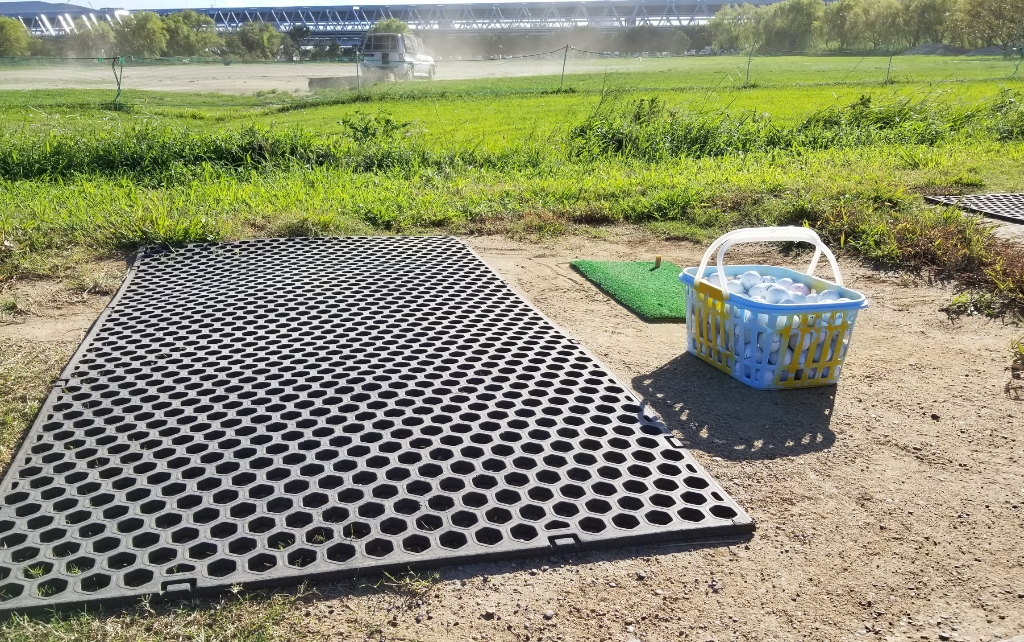 写真ではわかりにくいですが、ほとんどの打席でマットが足元より低く、