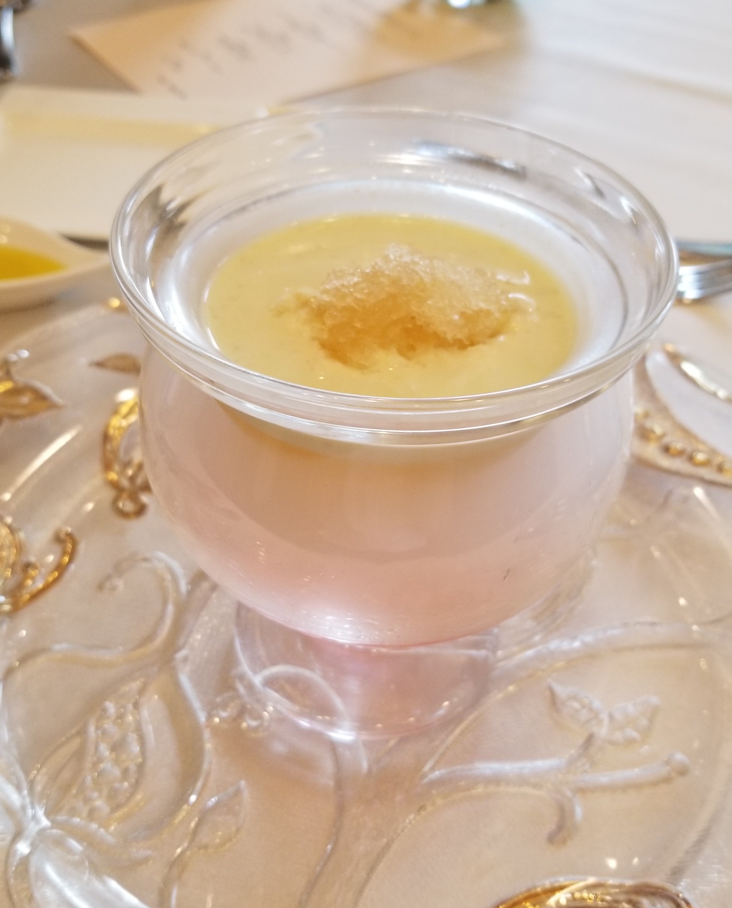 冷たいコンソメのジュレと、ポタージュに和出汁のかき氷